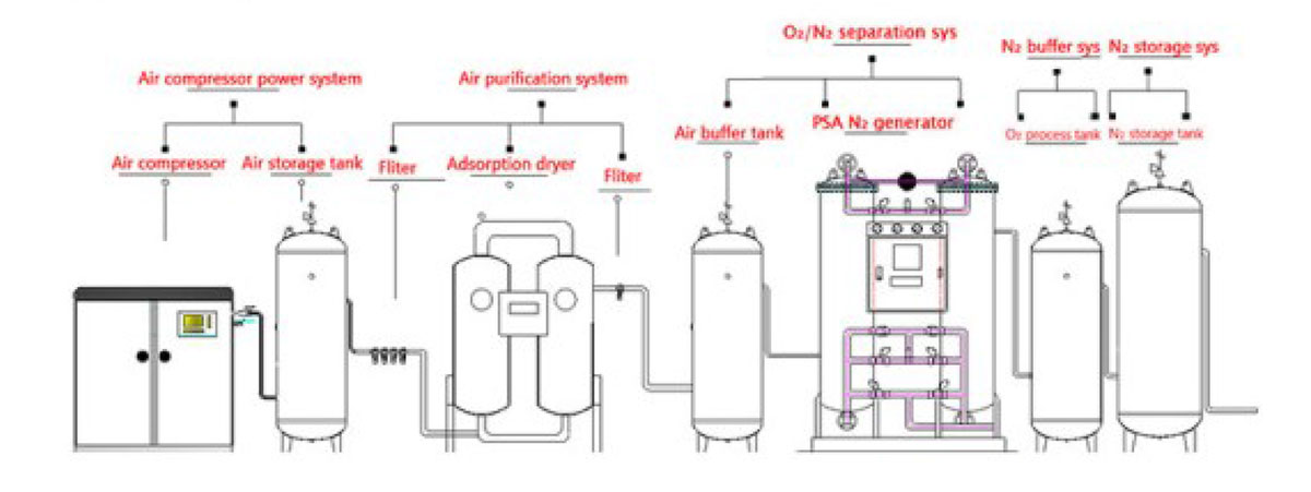 ◆Prepared nitrogen machine flow, purity automatic adjustment system, optional remote monitoring system.
